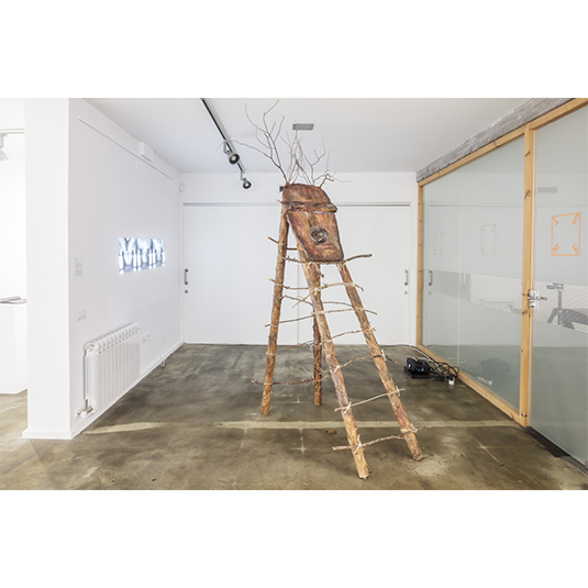 Instalación escultura, papel kraft, cartón, ramas de árboles, lanas y pintura acrílica. Vídeo duración 8:18 min, diseño sonoro interpretado especialmente para la obra